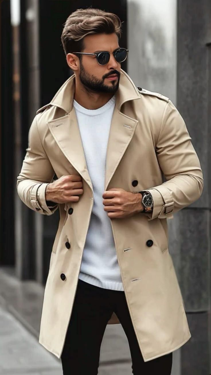 Neuer Wollmantel für Herren mit Doppelkragen für Herbst und Winter
